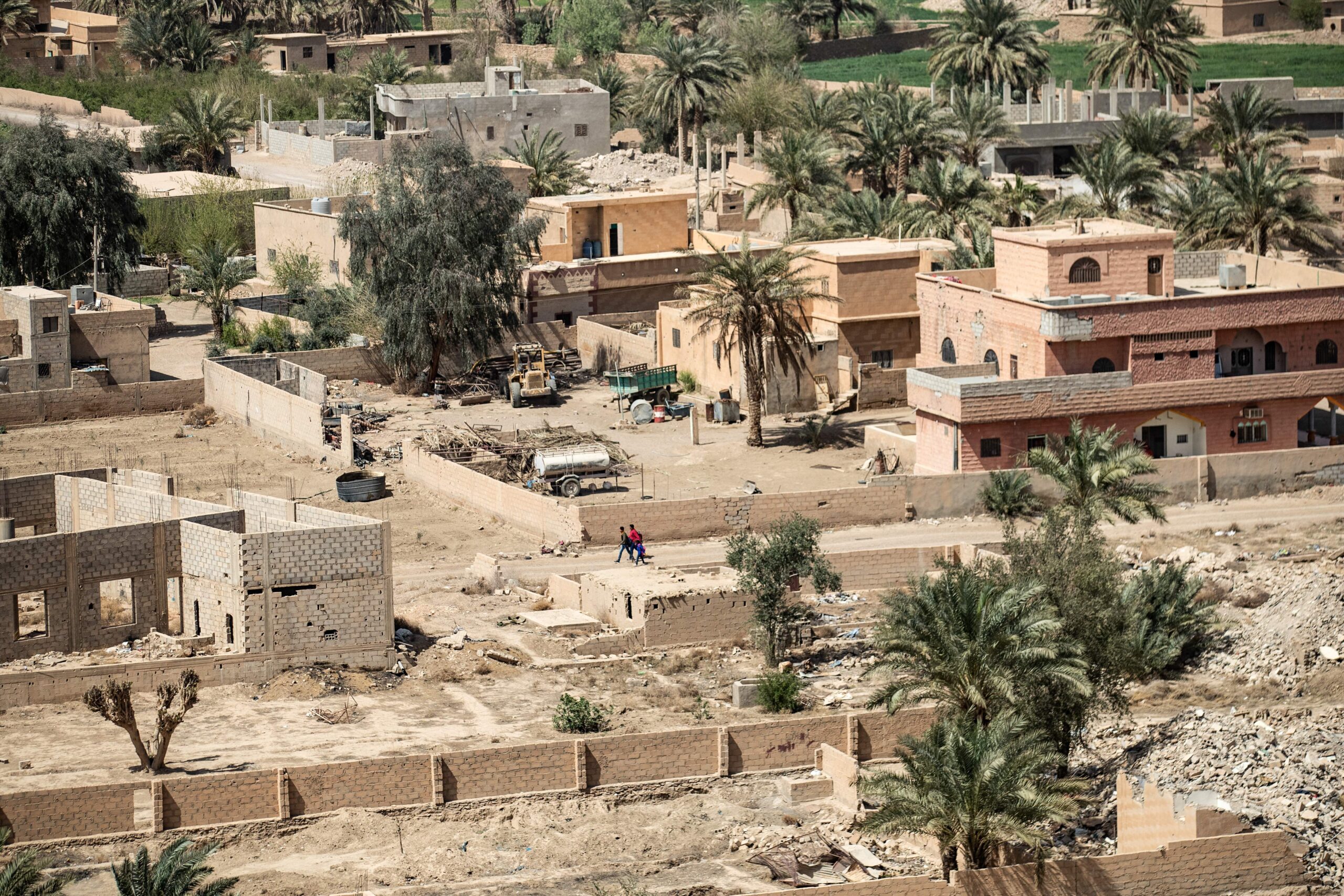 This picture shows a partial view of the village of Baghouz in Syria's northern Deir Ezzor province, on March 24, 2021, where two years ago, the Islamic State Group (IS) made their last stand before being defeated. - In March 2019, after Kurdish fighters and the US-led coalition declared the IS proto-state defeated, Baghouz looked like a churned up wasteland, its roads were dotted with destroyed homes. Now, residents have started to renovate battered buildings. Children have also returned to school and a handful of businesses have reopened. But twisted metal wreckage continues to litter the floor, several homes remain abandoned and IS insignia can still be spotted on walls across the village. (Photo by Delil SOULEIMAN / AFP) (Photo by DELIL SOULEIMAN/AFP via Getty Images)