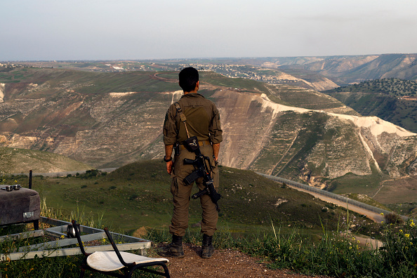 An Israeli soldier stands at a lookout point in the Israel-annexed Golan Heights overlooking south Syria, on March 25, 2025. Israel's military said it carried out a second strike in Syria on March 25, in response to incoming fire from across the demarcation line, hours after Syrian authorities reported that at least five people had been killed as a result of Israeli shelling. (Photo by Jalaa MAREY / AFP) (Photo by JALAA MAREY/AFP via Getty Images)