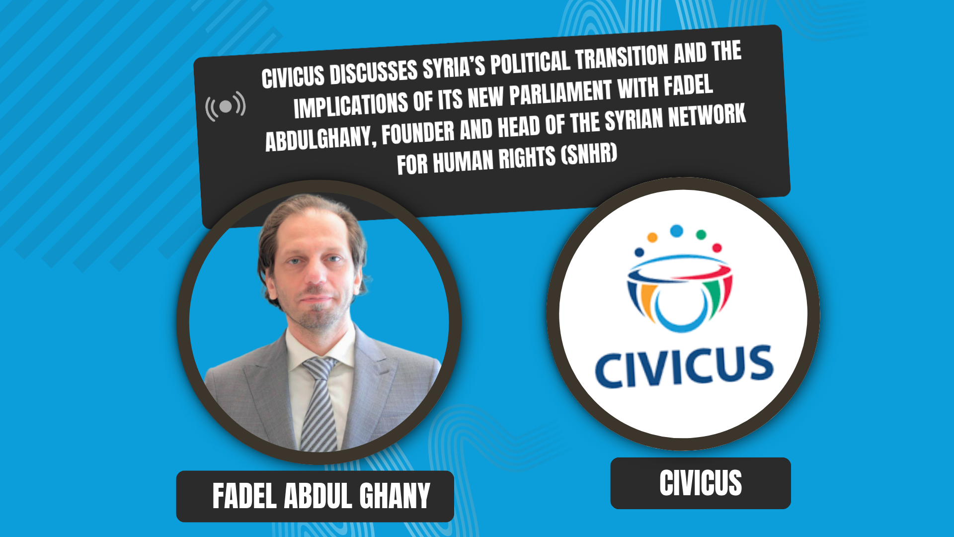 CIVICUS discusses Syria’s political transition and the implications of its new parliament with Fadel Abdulghany, founder and head of the Syrian Network for Human Rights (SNHR). Established in 2011, SNHR documents human rights violations, supports accountability efforts and advocates for justice and democratic reform.